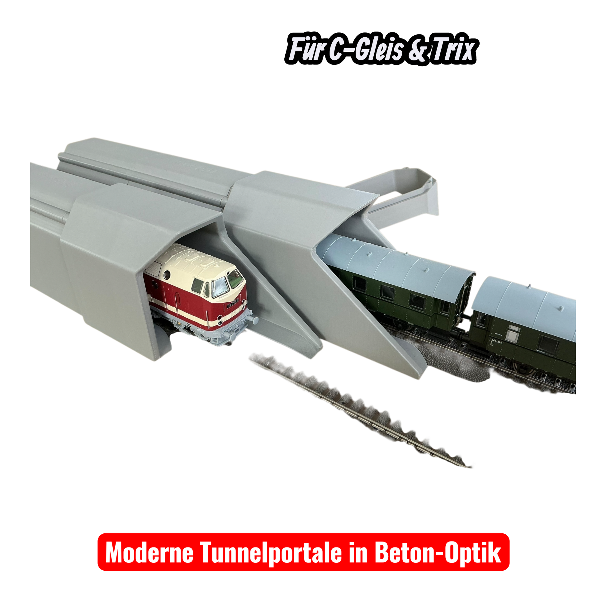 Erleben Sie realistische moderne Tunnelportale in Ihrem H0-Modelleisenbahn-Layout! Unsere hochwertigen Tunnelportale sind speziell für Märklin C-Gleis & Trix-Gleis konzipiert und in verschiedenen Varianten erhältlich: Eingleisig & Zweigleisig für gerade Strecken.